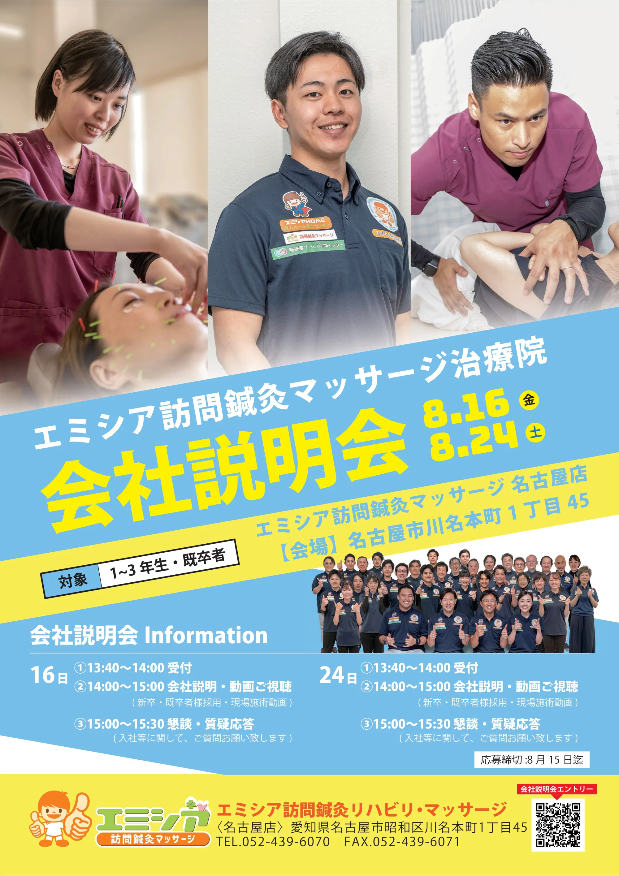 エミシア訪問鍼・マッサージ治療院 会社説明会のお知らせ